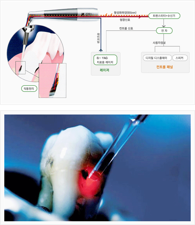 잇몸 하방의 치근면에 부착된 침착물의 제거와 염증성 잇몸에 대한 처치로 Laser로 치은연하 소파술을 시행합니다. Laser 치은연하 소파솔이란 치근과 접하고 있는 내면의 염증성 잇몸조직을 긁어내는 과정으로 잇몸 염증(치은염) 또는 초기 치주염의 경우에 잇몸의 염증을 해소시켜 치료를 도모하는 비교적 간단한 치료로 전 치아를 3~4회로 나누어 치료하며 치료시간도 짧습니다. Laser로 치료하면 일반 치은연하 소파솔과 달리 치료시 통증이 적어 마취가 별도로 필요하지 않으며 수술 후 통증도 적습니다.
